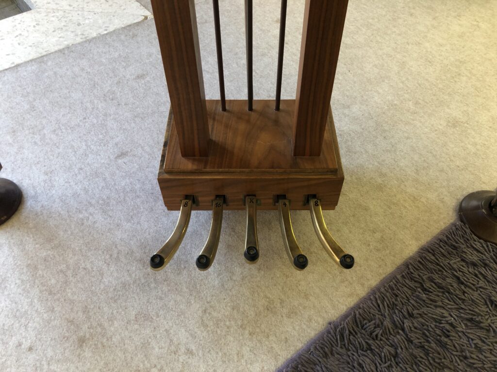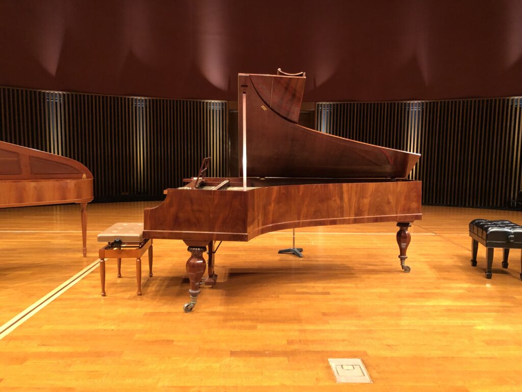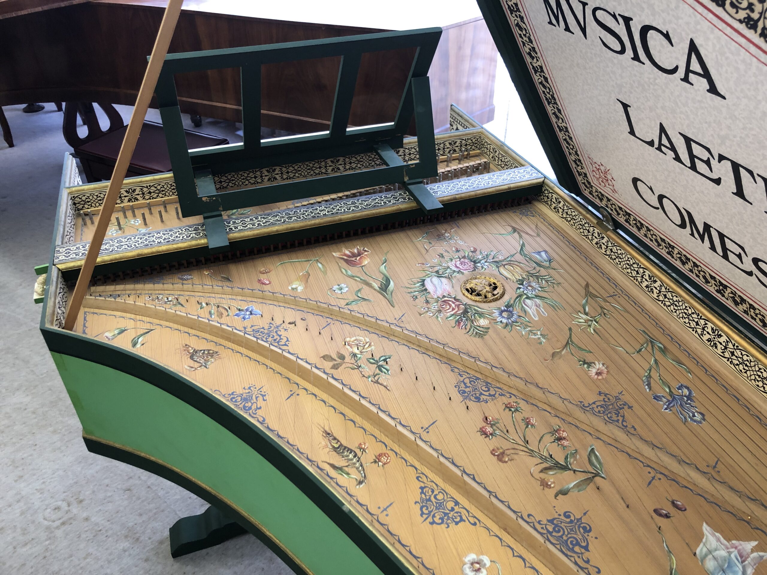 現代のピアノと違い弦をはじくことで音を出す撥弦鍵盤楽器であり、タッチ感も現代の物とは異なります。